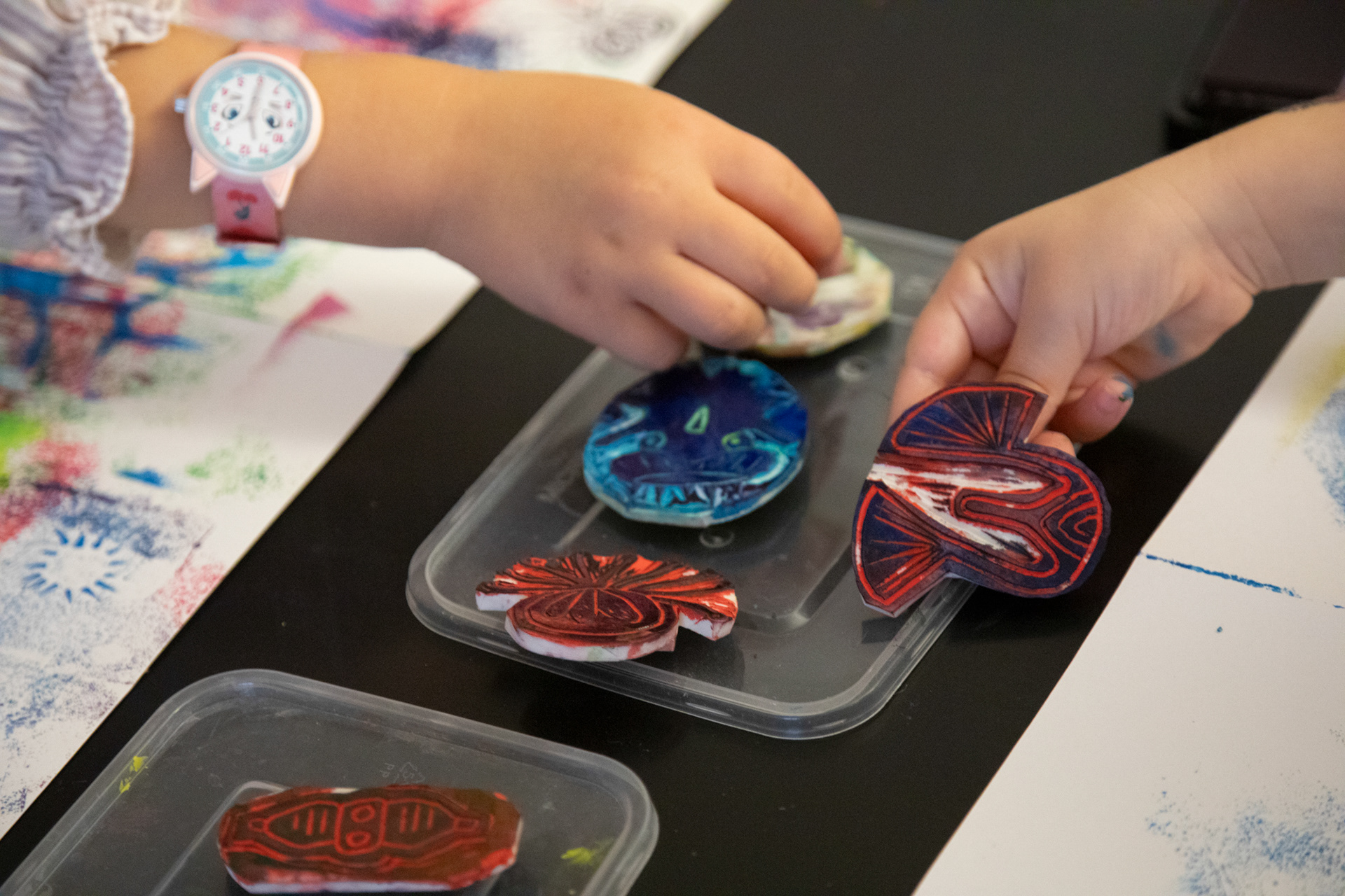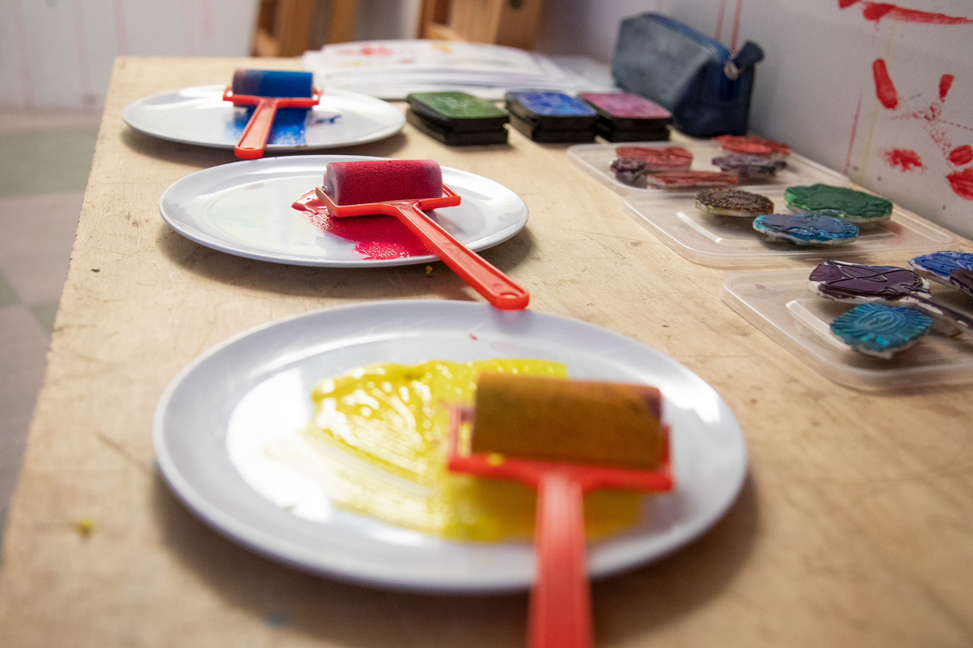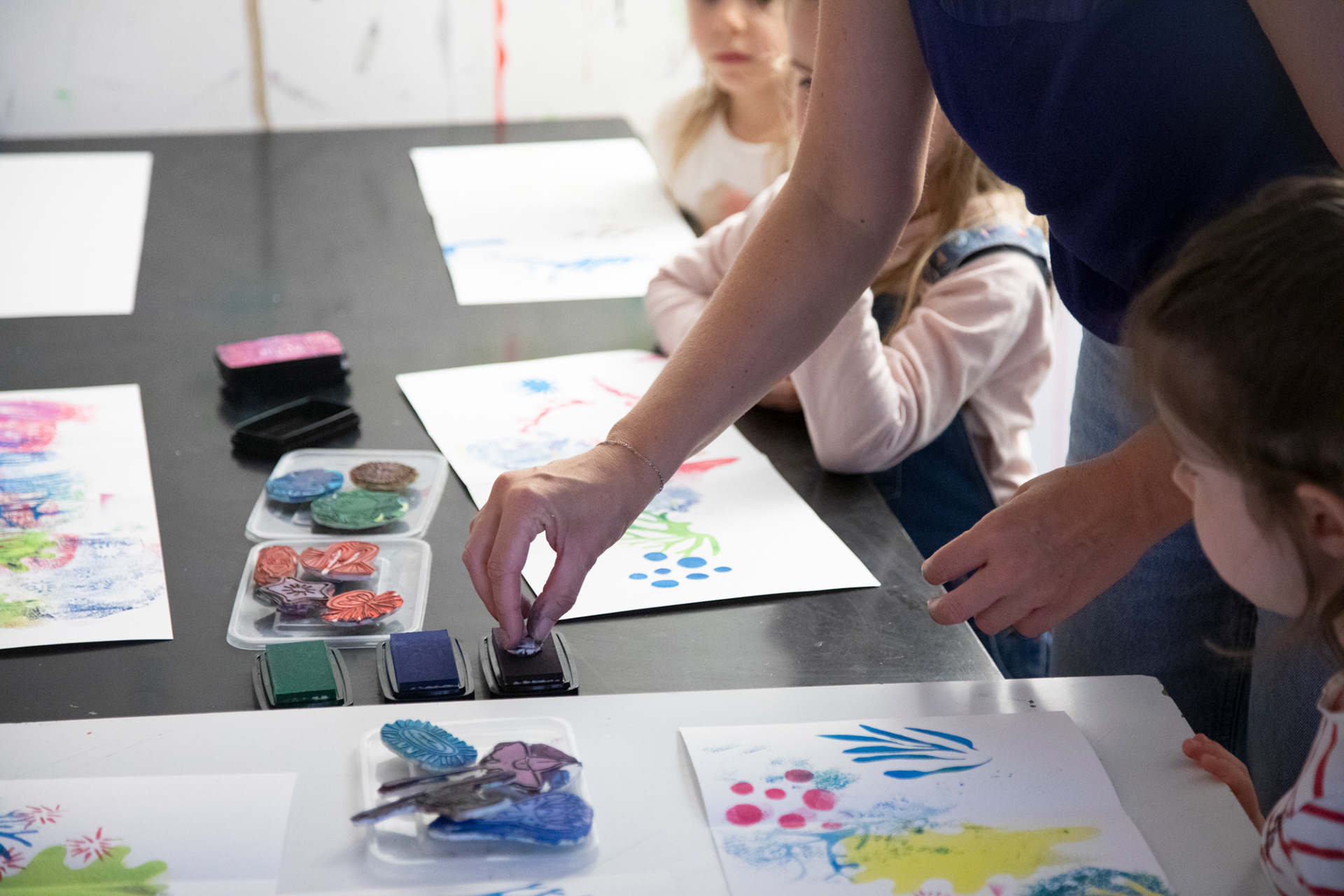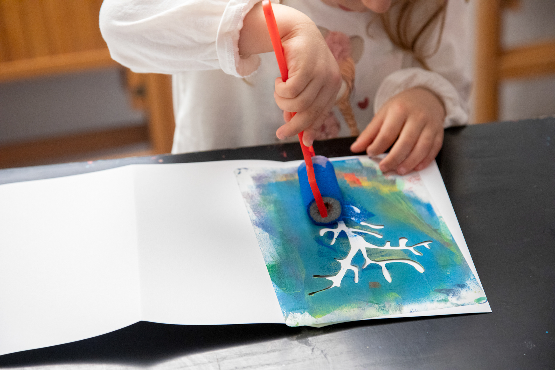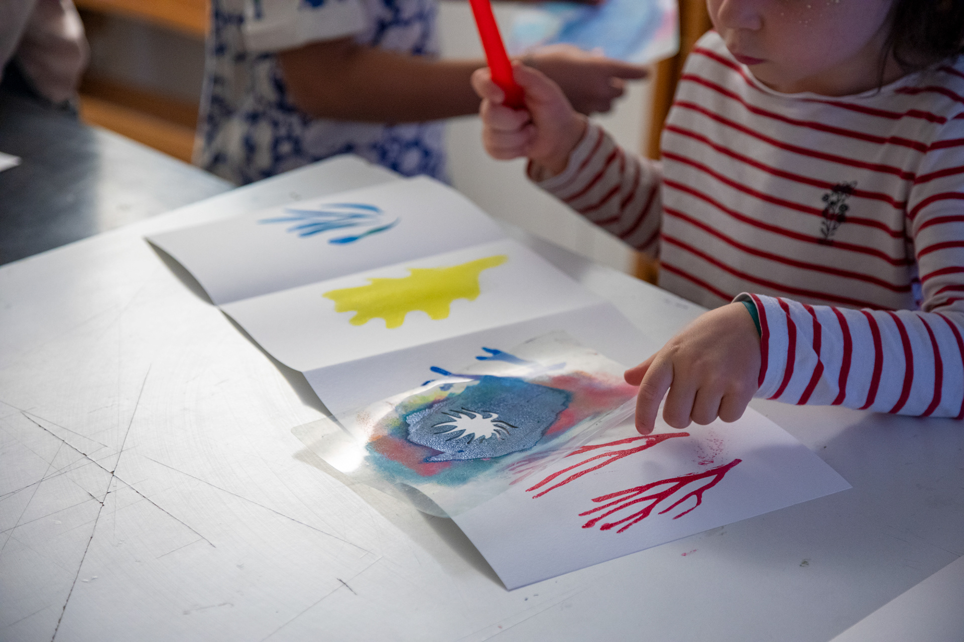 Atelier d'illustration autour de l'album Petite Étoile dans l'Océan. Création d'un leporello illustré sur l'océan. Avec de la peinture, des pochoirs de coraux, de poissons, de gorgones et des tampons de créatures marines, crée ton paysage sous marin, puis, dessine-toi en petit plongeur. Imagine la couverture de ton livre et invente un titre !